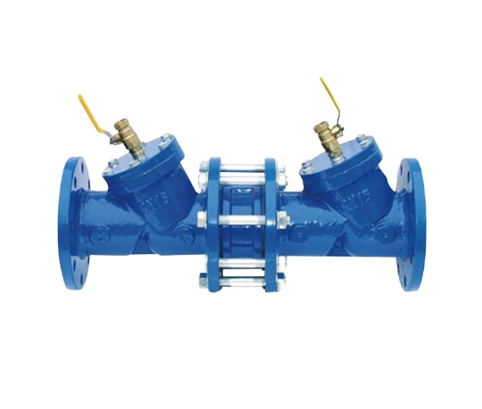 倒流防止器是在两个止回阀之间加一个排水器组成。排水器上腔用高压管与低一级止回阀进口端连接。低一、二级止回阀主要由阀体、阀盖、阀瓣、密封垫、弹簧等组成。排水器主要由阀体、阀盖、隔膜、阀瓣、密封板、阀闷、阀座、弹等组成。普通型为两个止回阀串联而成。